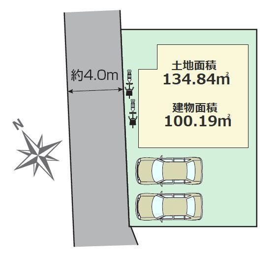 | 土地面積 | 実134.84㎡(40.78坪) | 接道 | 西側幅 約4.0m(位置指定) |