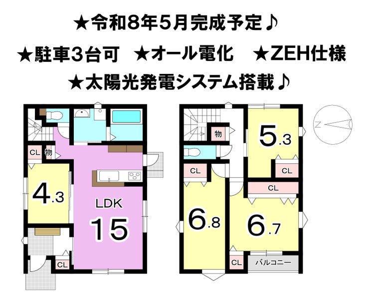 ■令和8年5月完成予定 ■駐車3台可 ■オール電化 ■ZEH仕様 ■太陽光発電システム搭載