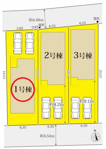 | 土地面積 | 129.89㎡(39.29坪) | 接道 | 北側(公道)幅 約4.4m 間口 約6.65m 南側(公道)幅 約4.5m 間口 約6.35m |