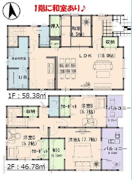 | 備考 | ◆ダブルバルコニーで開放的☆ ◆WICをはじめとした豊富な収納♪ ◆リビングは広々18帖! ◆1階に和室あり! ※網戸・照明器具・カーテンレール・CATV等は別途注文となります。 |