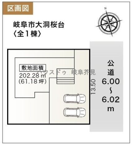 | 土地面積 | 公202.28㎡(61.18坪) | 接道 | 東側(公道)幅 約6.0m 間口 約13.50m |
