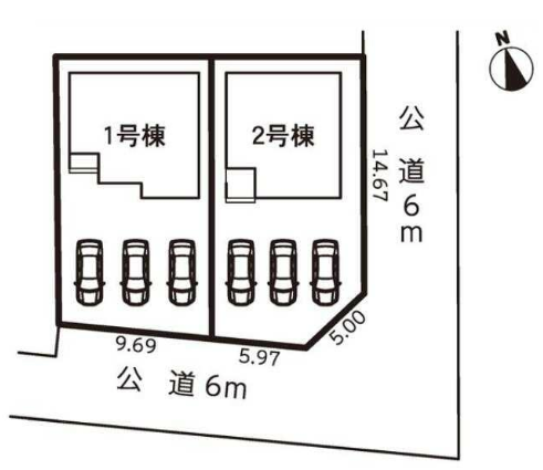 | 土地面積 | 公166.1㎡(50.24坪) | 接道 | 南側(公道)幅 約6.0m 間口 約10.97m 東側(公道)幅 約6.0m 間口 約14.67m |