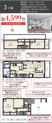| 分譲情報 | 【販売戸数】:3戸 【価格】:4,299万円 ~4,799万円 【土地面積】:70.23㎡ ~76.95㎡ |