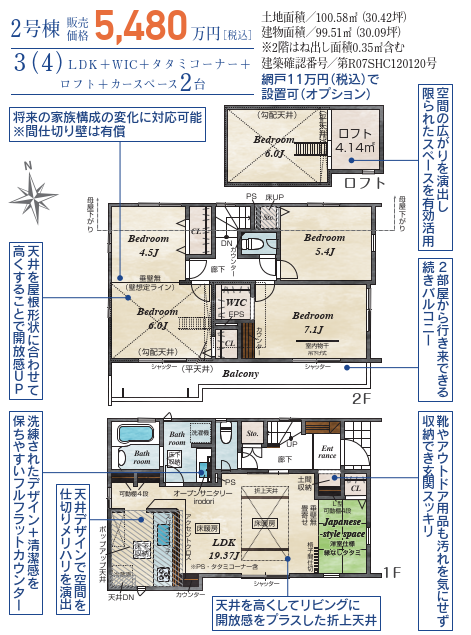 | 建物面積 | 公99.51㎡ | 駐車場 | あり 普通:2台 |
