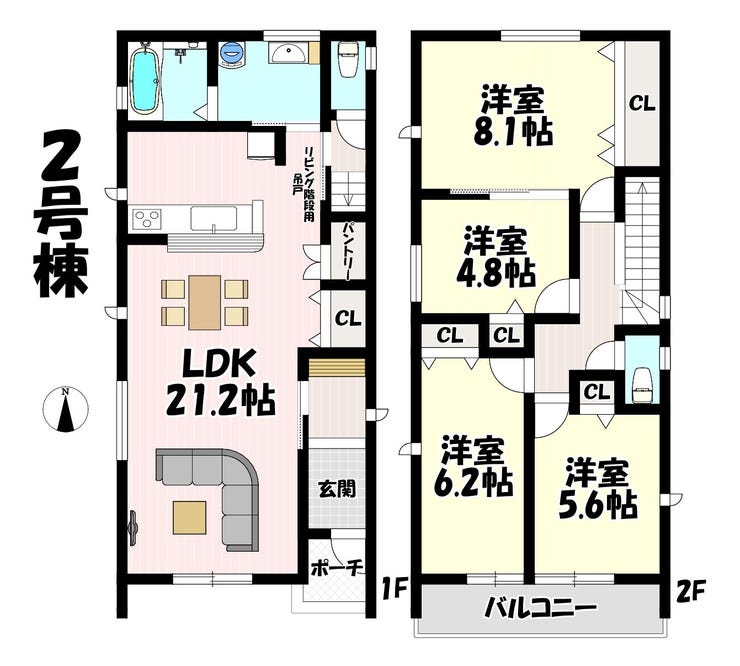 - 2面採光