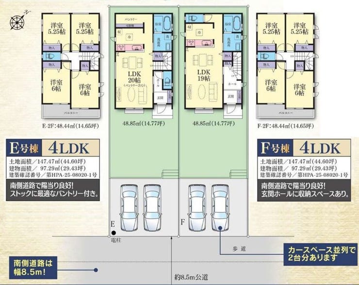 | 備考 | □フラット35S利用可 □全棟、キッチンに食洗機付き □南側道路幅8.5mで開放感有り □カースペース並列2台可(車種による) |