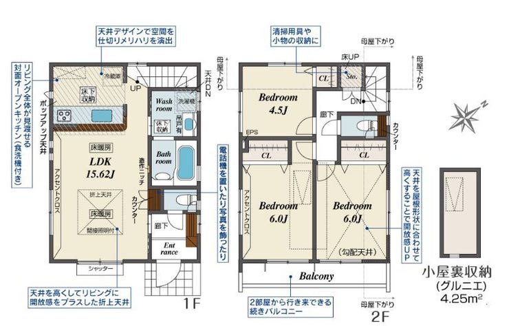 ・小屋根裏収納など各所収納豊富