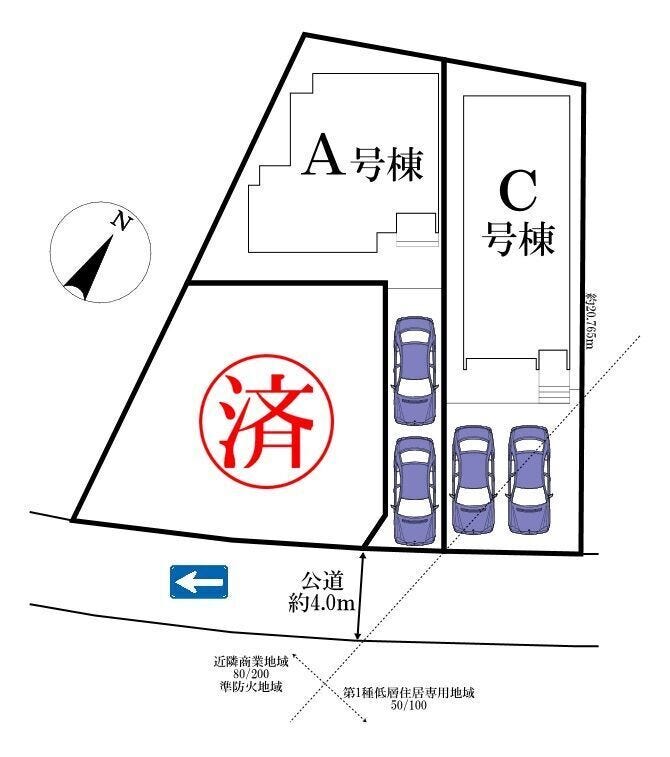 | 土地面積 | 129.63㎡(39.21坪) | 接道 | 南東側(公道)幅 約4.0m |