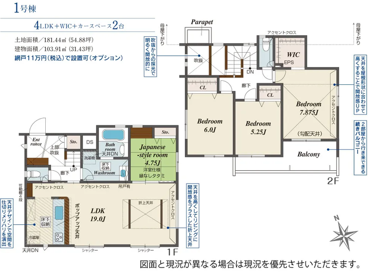 | 建物面積 | 103.91㎡ | 駐車場 | あり 普通:2台 |