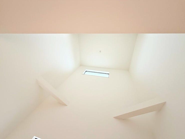 吹き抜けのあるリビングが魅力。明るい光が家族の団欒を優しく包み込みます。