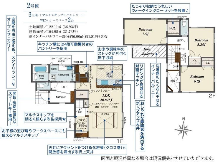 | 建物面積 | 104.95㎡ | 駐車場 | あり 普通:2台 |