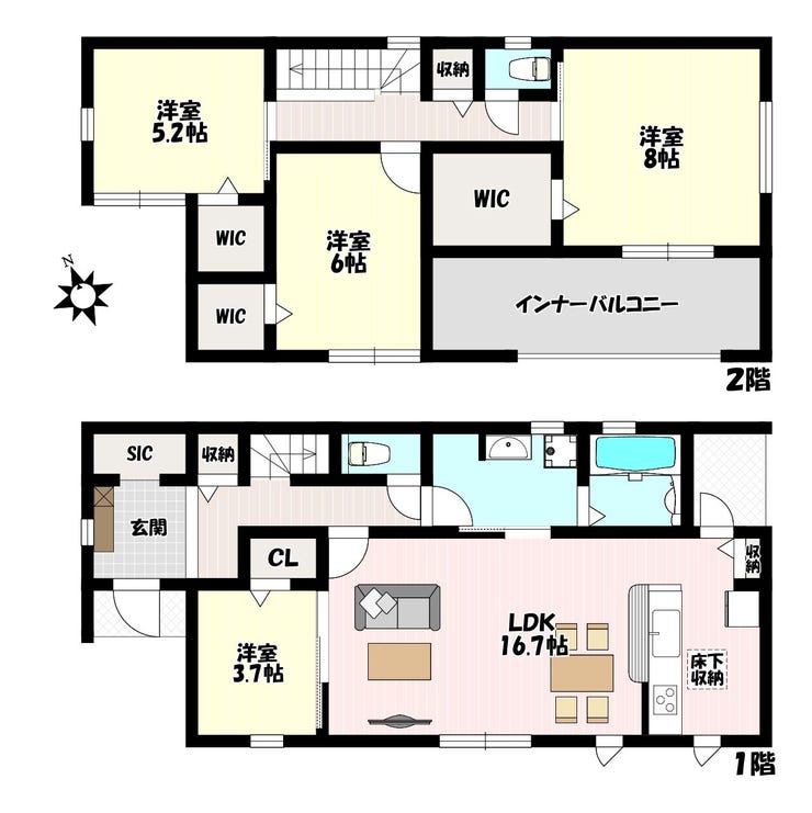◎2階全居室WIC完備でお部屋すっきり♪