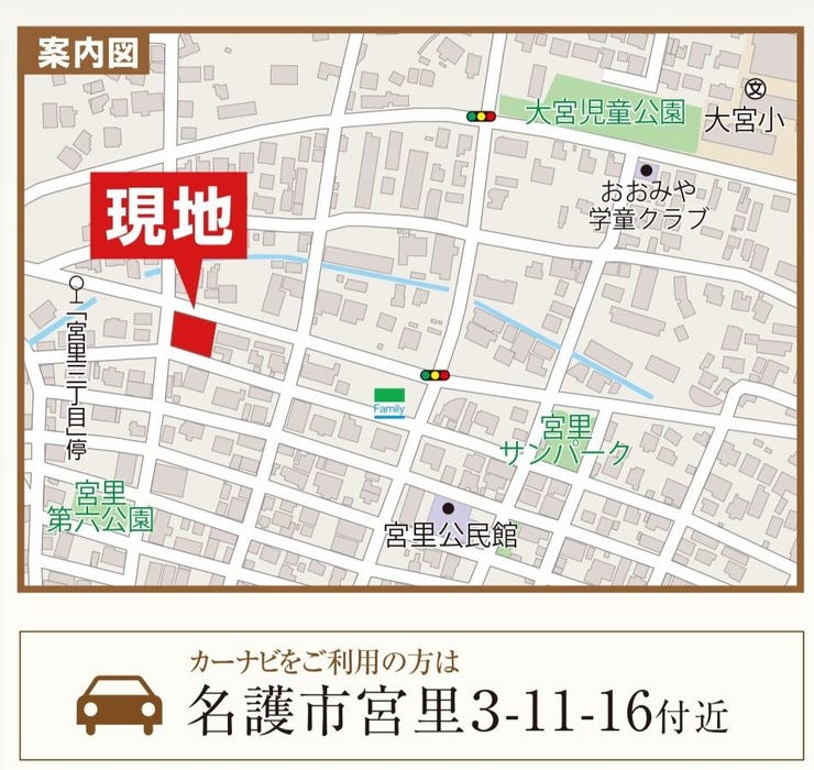 | 小学区 | 大宮小学校 徒歩8分 (約600m) | 中学区 | 大宮中学校 徒歩19分 (約1500m) |