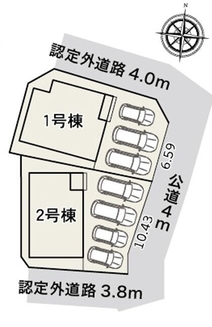 | 土地面積 | 公142.82㎡(43.20坪) | 接道 | 東側(公道)幅 約4.0m 北側幅 約4.0m 南側幅 約3.8m |