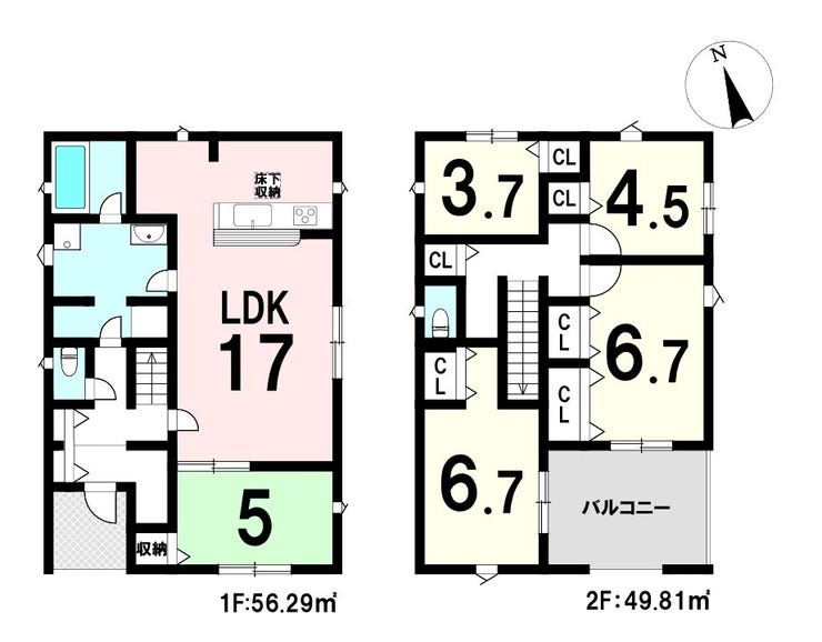 | 建物面積 | 106.1㎡ | 駐車場 | あり 普通:2台 軽:1台 |