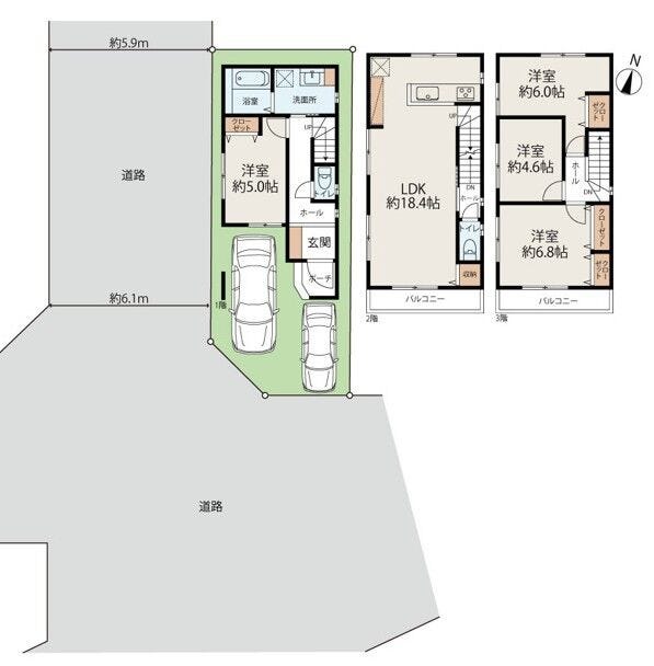 | 土地面積 | 63.2㎡(19.11坪) | 接道 | 南側(公道)幅 約6.0m 西側(公道)幅 約6.0m |