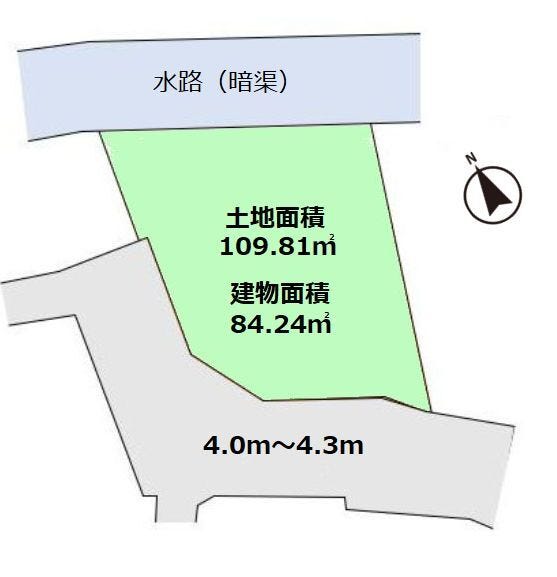 | 土地面積 | 実109.81㎡(33.21坪) | 接道 | 南側(公道)幅 約4.0m |