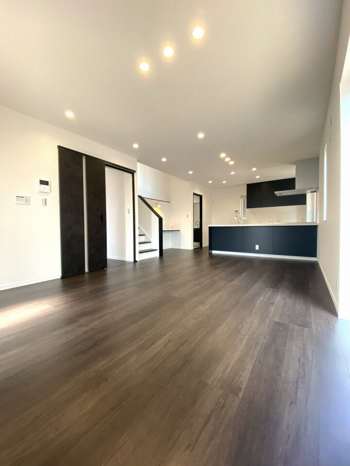 こちらは米原市長沢の新築物件でございます!駐車スペースは2台可能でございます。LDKは約19帖と広く使いやすい家事同線となっております。