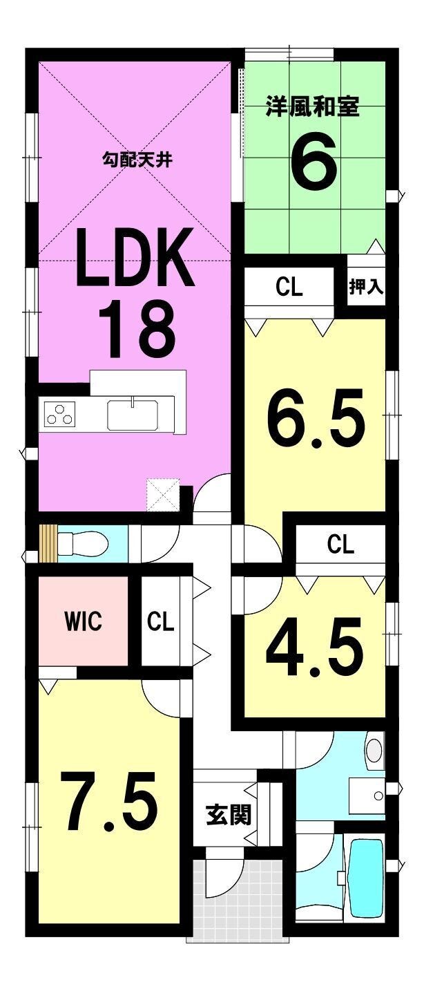 【人気の平屋建て】【リビング18帖勾配天井の開放感】【WIC付】【加治木駅まで徒歩8分】