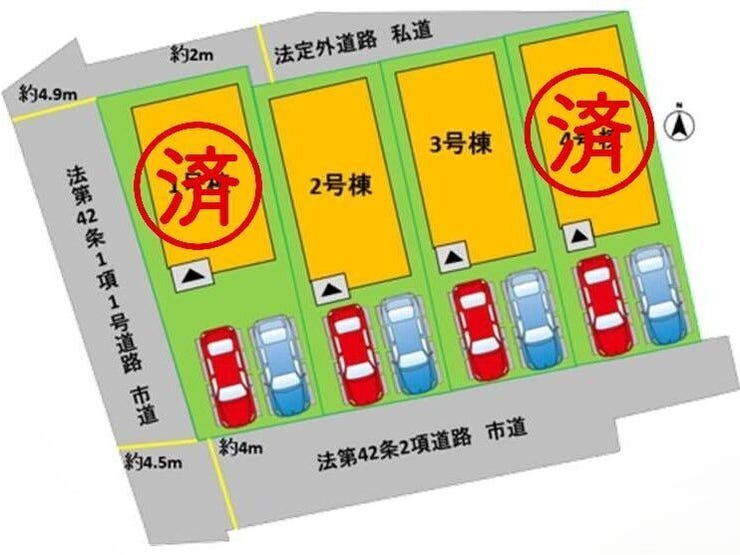 | 分譲情報 | 【販売戸数】:4戸 【価格】:3,898万円 ~4,098万円 【土地面積】:139.76㎡ ~164.47㎡ |