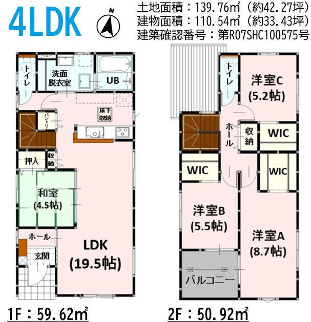| 築年月 | 2025年(令和7年)07月築 | 建築確認 | 第R07SHC100575号 |
