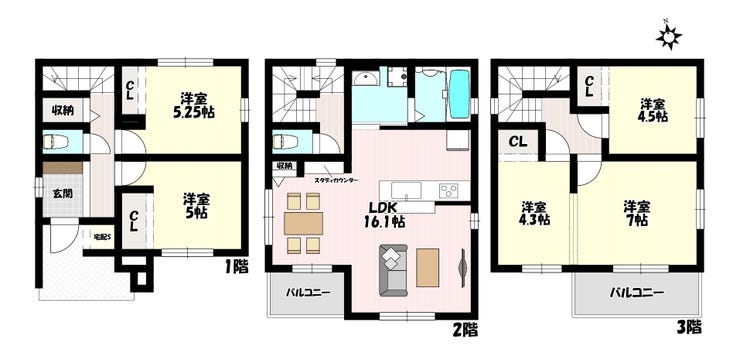 ◎3階建て、2階部分LDKで眺望良好