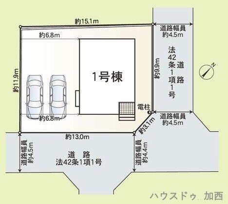| 土地面積 | 公181.56㎡(54.92坪) | 接道 | 北東側(公道)幅 約4.5m 南東側(公道)幅 約4.4m |