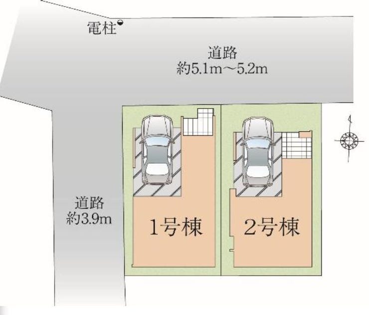| 土地面積 | 56.83㎡(17.19坪) | 接道 | 北側(公道)幅 約5.1m 西側(公道)幅 約3.9m |