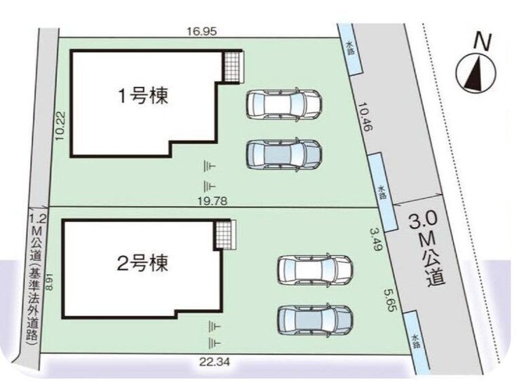 | 土地面積 | 公187.33㎡(56.66坪) | 接道 | 東側(公道)幅 約3.0m 西側(公道)幅 約1.2m |