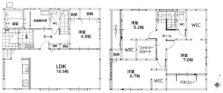 2階のお部屋は全室WICあり!ファミリークロークもついてます☆