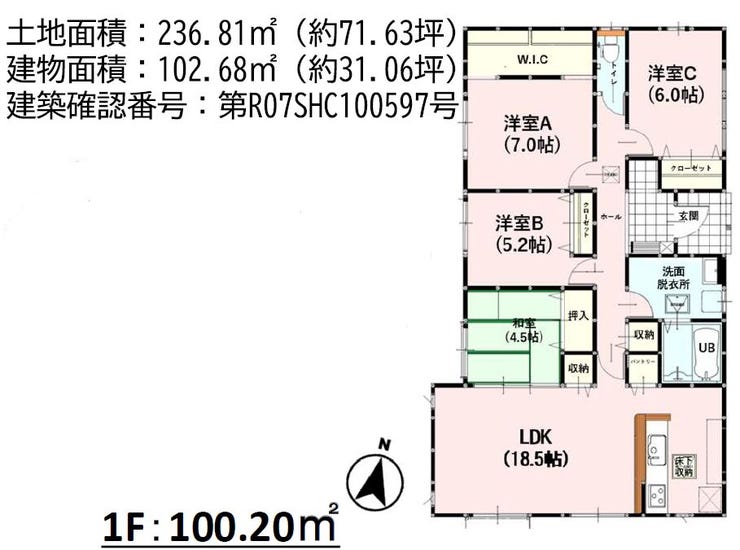 | 建物面積 | 102.68㎡ | 駐車場 | あり 普通:2台 |