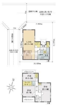 | 土地面積 | 公117.71㎡(35.60坪) | 接道 | 北側(公道)幅 約6.0m 間口 約7.92m 西側(公道)幅 約4.0m 間口 約9.81m |