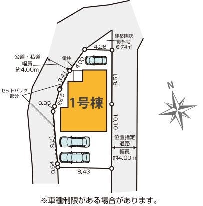 | 土地面積 | 147.65㎡(44.66坪) | 接道 | 北西側(公道)幅 約4.0m 北西側(私道)幅 約4.0m 東側(公道)幅 約4.0m(位置指定) |