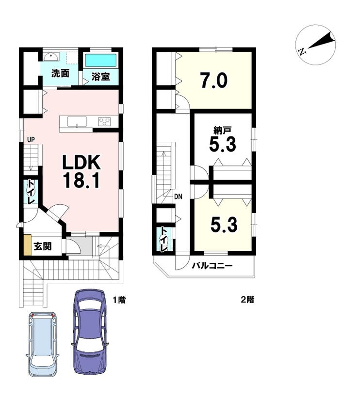 | 建物面積 | 93.56㎡ | 駐車場 | あり 普通:1台 軽:1台 |
