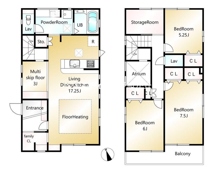 JR日野駅徒歩12分。玄関横のファミクロとマルチスキップのある家。
