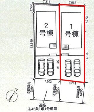 | 土地面積 | 実146.96㎡(44.45坪) | 接道 | 南側(公道)幅 約6.0m 間口 約6.79m |