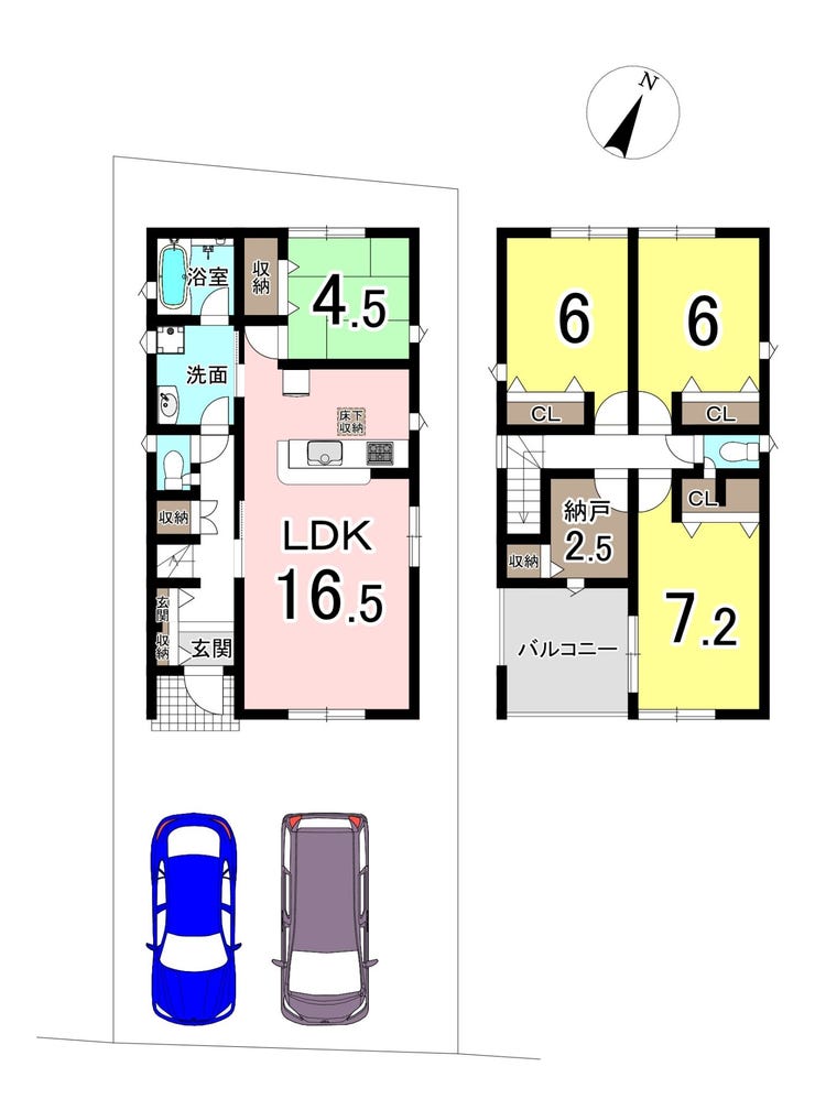 | 備考 | ☆駐車並列2台可(車種により異なる) ☆耐震+制震の家 ☆1階に和室あり ☆全居室収納あり ☆閑静な住宅街 ☆2階に2.5帖の納戸あり |