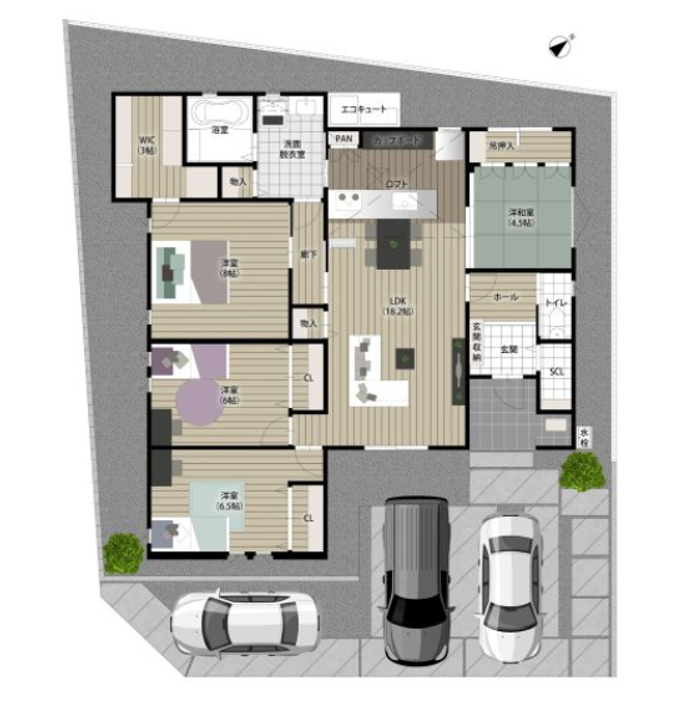 | 建物面積 | 105.34㎡ | 駐車場 | あり 普通:3台 |