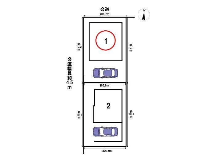 | 土地面積 | 公69.37㎡(20.98坪) | 接道 | 北側(公道)幅 約8.9m 間口 約6.78m 西側(公道)幅 約4.5m 間口 約10.21m |