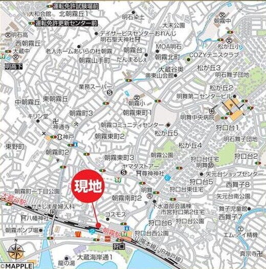 | 周辺環境 | ドラッグストアコスモスJR朝霧駅前店 徒歩5分 (約370m) 朝霧駅 徒歩4分 (約250m) コープ朝霧 徒歩5分 (約380m) 明舞保育園 徒歩6分 (約450m) ヤマダストアー朝霧店 徒歩10分 (約740m) ぽっかぽっかにっけ保育園朝霧 徒歩12分 (約960m) ラムー大蔵海岸店 徒歩13分 (約990m) 大蔵谷駅 徒歩12分 (約940m) 朝霧公園 徒歩14分 (約1050m) コープ大蔵谷 徒歩13分 (約970m) |