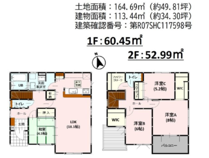 | 建物面積 | 113.44㎡ | 駐車場 | あり 普通:3台 |