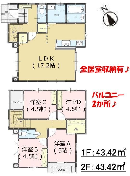 | 建物面積 | 86.84㎡ | 駐車場 | あり 普通:2台 |