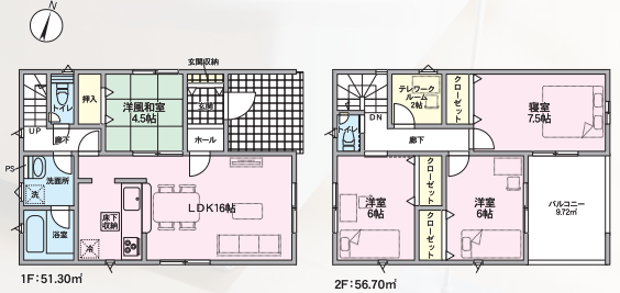 テレワークルーム完備で在宅勤務時や趣味部屋としてプライベート空間を確保できる嬉しい間取りです♪
