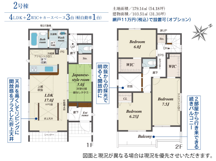 | 建物面積 | 103.51㎡ | 駐車場 | あり 普通:2台 軽:1台 |