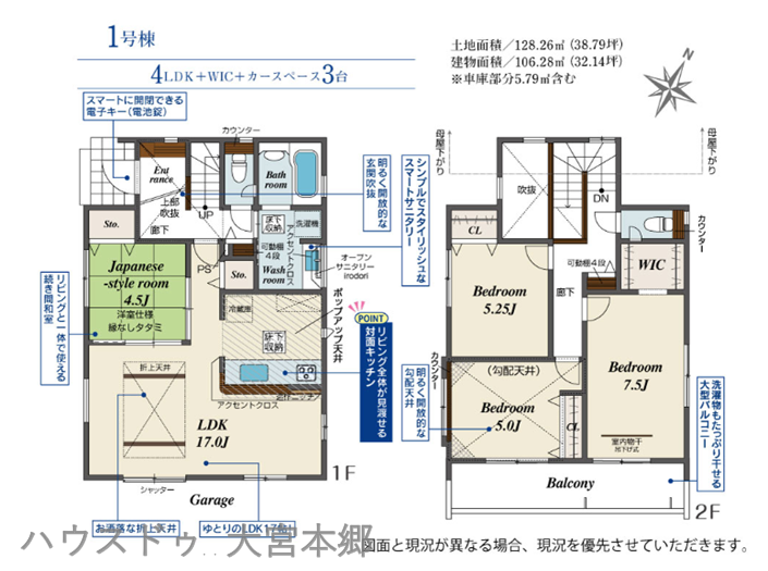 | 建物面積 | 106.28㎡ | 駐車場 | あり 普通:3台 |