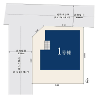 | 土地面積 | 実100㎡(30.25坪) | 接道 | 西側(私道)幅 約4.3m(位置指定) 北側(公道)幅 約4.0m |