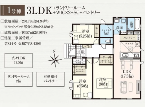 | 築年月 | 2025年(令和7年)12月築 | 建築確認 | 第814号 令和7年8月29日 |