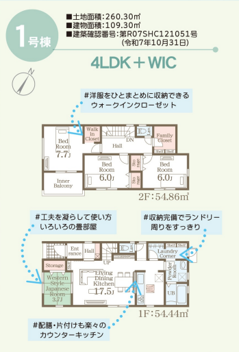 小学校まで徒歩約5分♪並列3台駐車可能♪ランドリーコーナーやファミリークローゼット等がある暮らしにゆとりのできる嬉しい間取りです♪