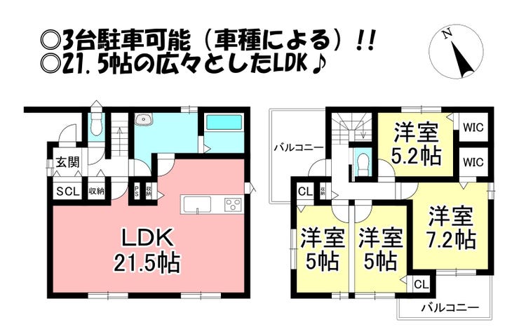 ◎3台駐車可能(車種による)!