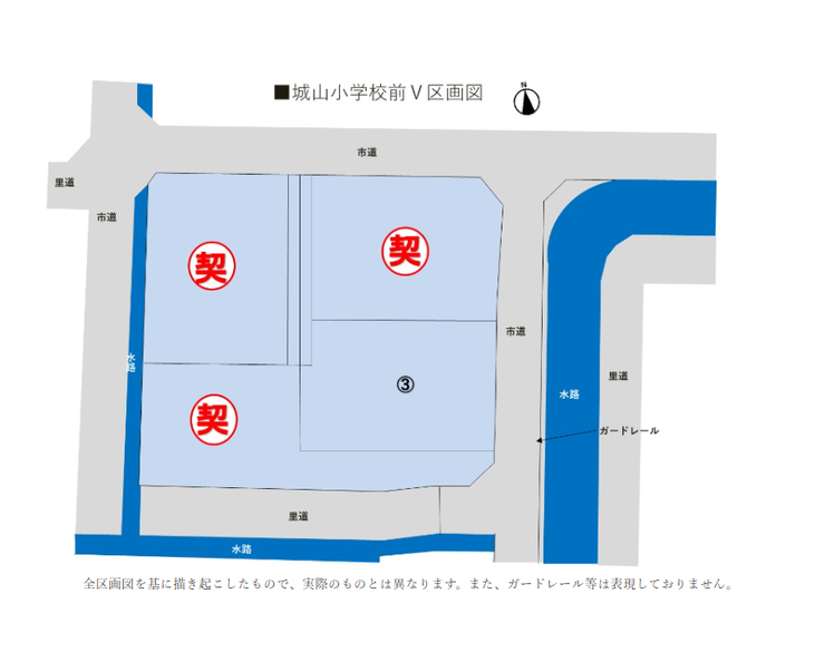 | 小学区 | 城山小学校 徒歩10分 (約770m) | 中学区 | 三和中学校 徒歩29分 (約2300m) |